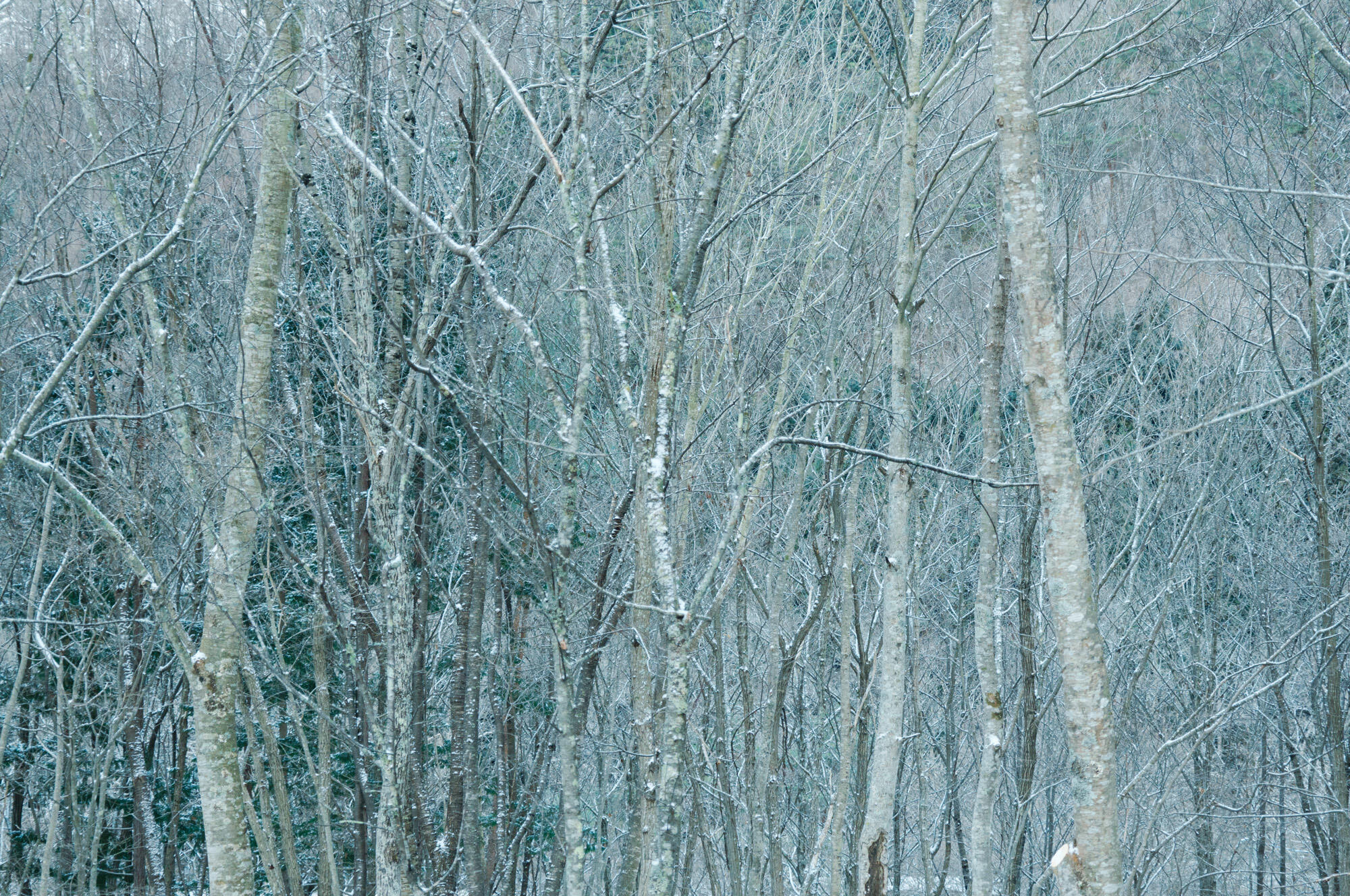 Photographing in the forest requires light and compact equipment. Attached to my Sigma fpL camera, I could capture the vastness of the forest, the ridge of Mt. Yakushi-dake in the distance, the moon shining through the empty branches above me, and snowflakes resting on the backs of horses with a single lens.