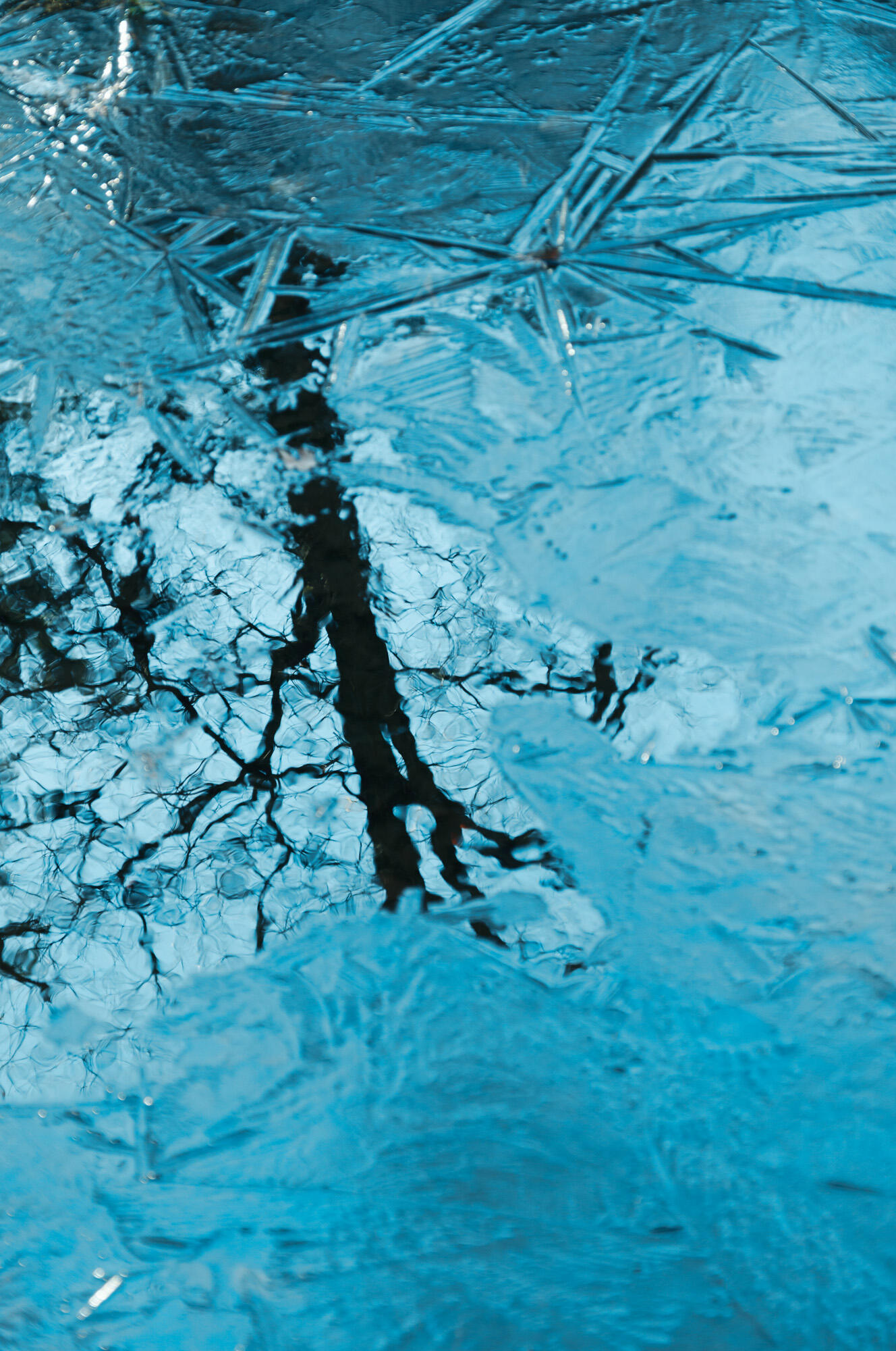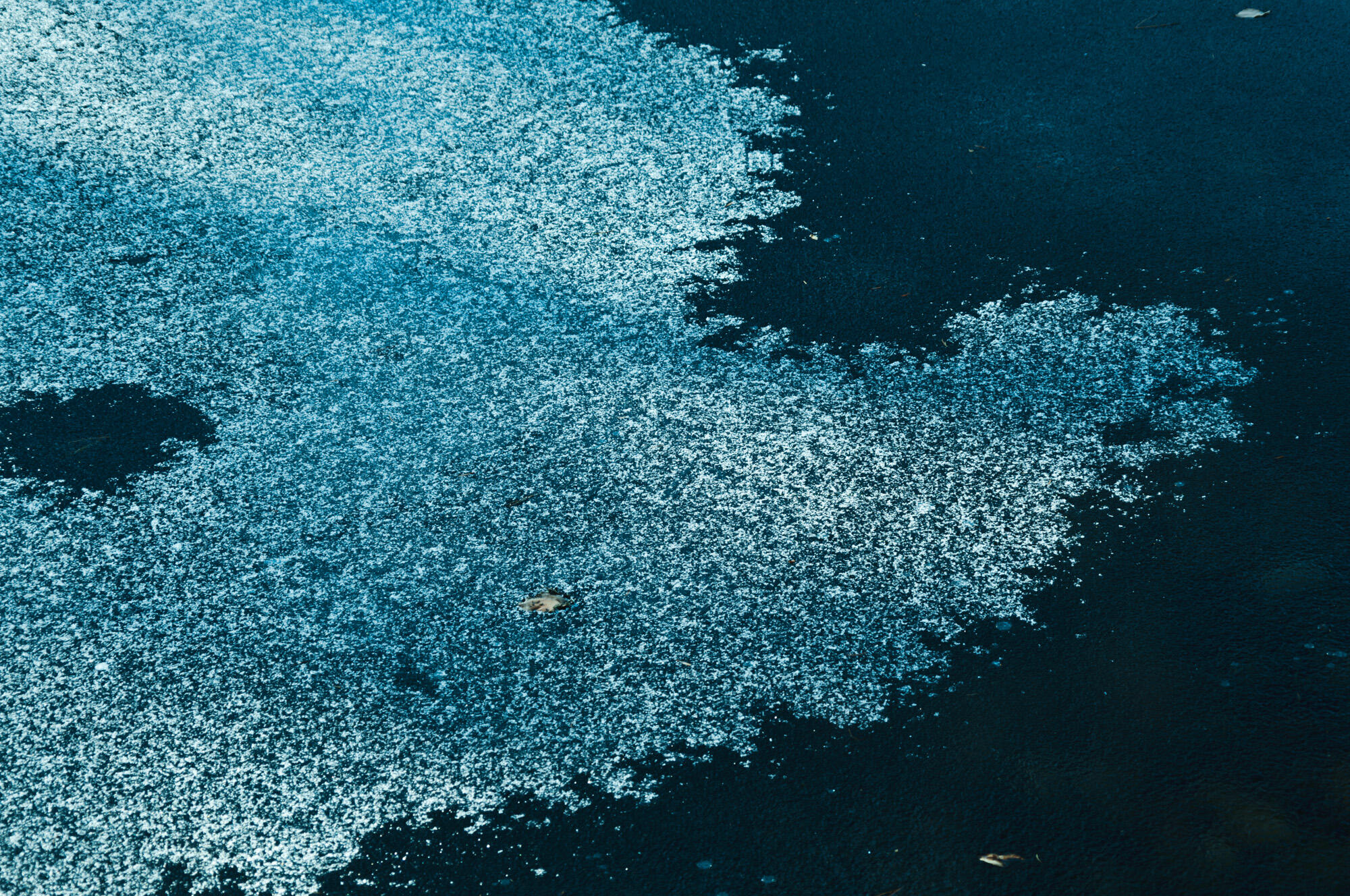 The leaves have fallen from the Japanese larch trees, and sunlight pours down on the ground beneath the forests of Tono. With every step I take, I crunch frozen leaves and feel ice needles crack beneath my boots. Snow from a few days ago has melted in the sun and frozen again, forming shapes that resemble sugar candy. When I try to pick them up, they crumble between my fingertips and melt into a soft blanket of moss.