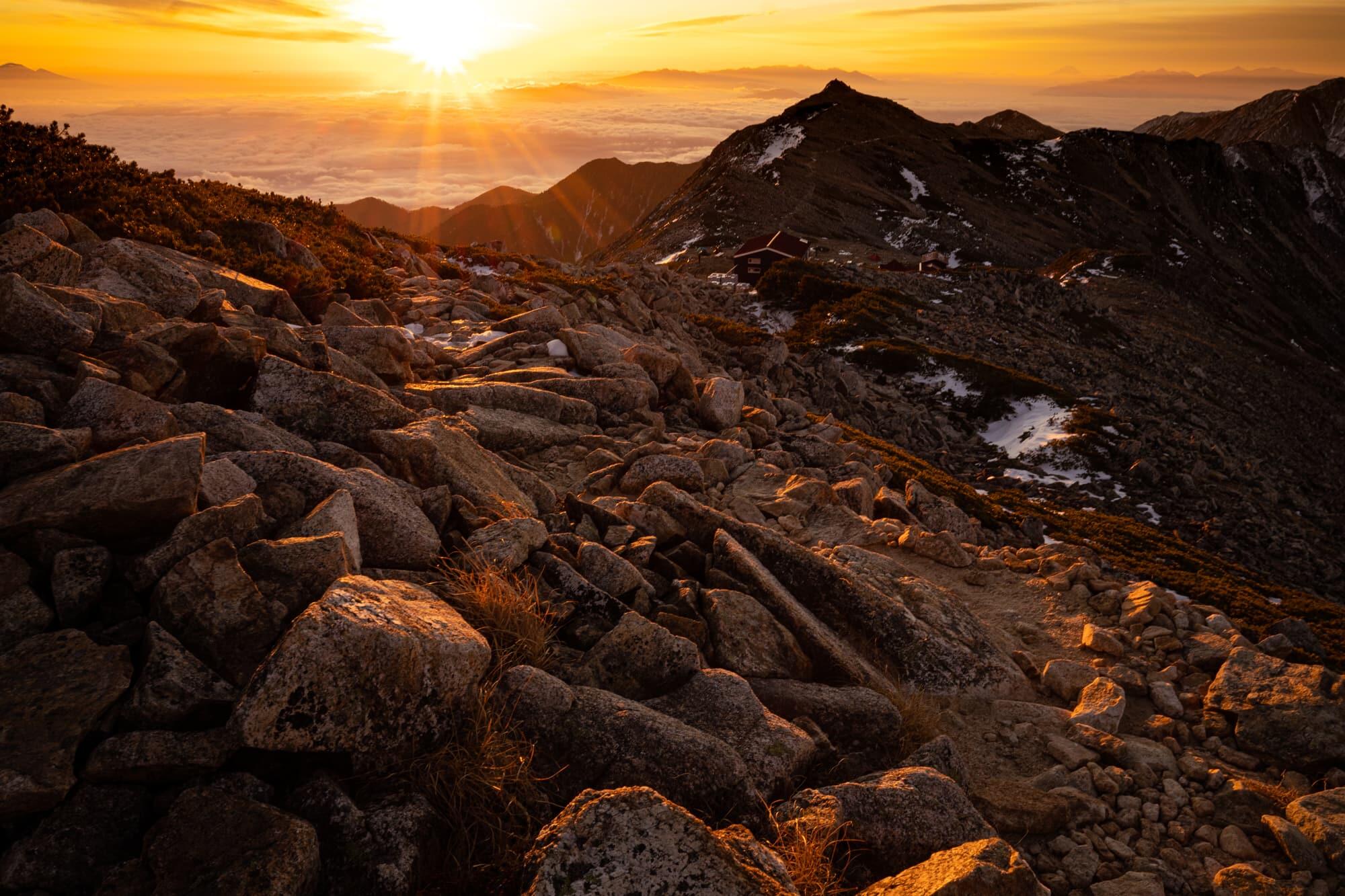 This is where I spent the night, overlooking Mt. Yari, the ‘Leader of the Northern Alps’. As the sun set, clouds gathered in the sky to gift me this dramatic moment.
