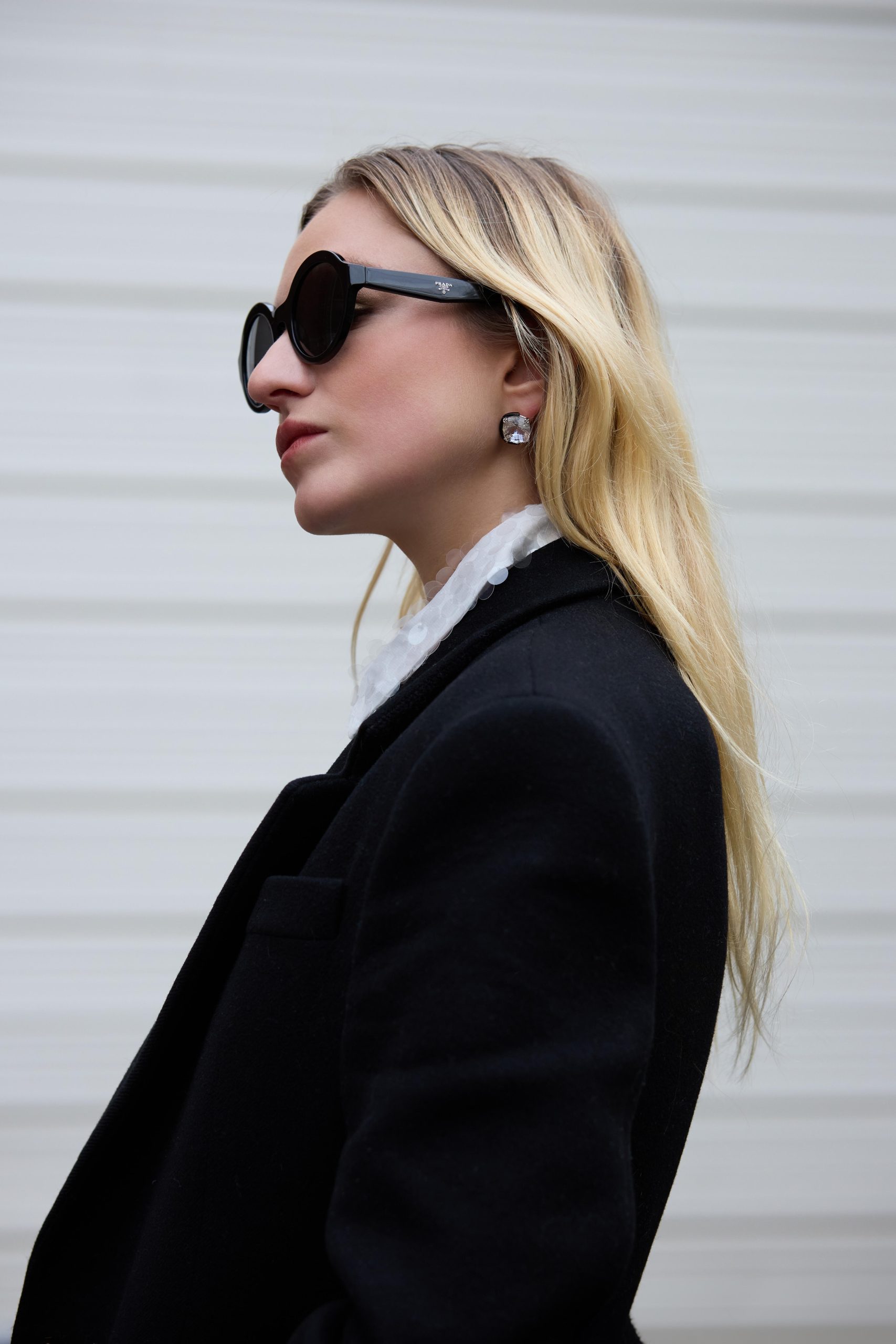 Unlike film, still photography lacks the benefit of dialogue or music to set the tone, so the location and clothes take on an even greater role in storytelling. To help convey this story, I collaborated with some dear friends. Our model Joan embodies the modern woman – complex, confident, sensual. She is both elegant and rebellious, a captivating enigma, much like the women of today. Styled by Sasha, an extraordinary fashion stylist, Joan’s looks draw inspiration from Fall/Winter 2024 trends – a fusion of Ferragamo, Jil Sander and my eternal dream client, YSL. Additionally, I chose Miraki Life Studio in Toronto’s west end as our location because it’s hard industrial textures and artistic vibe create a stark contrast to the wardrobe. I wanted to take viewers back to the nostalgia of the loud, larger than life, 1980’s New York/ Studio 54 culture.