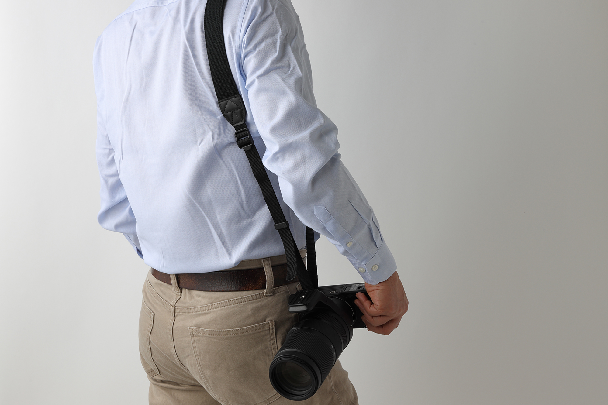 Because telephoto photography often requires a tripod, the dedicated tripod socket (sold separately) is strongly recommended to secure the lens and the camera to the tripod while maintaining a good weight balance. To install the tripod socket, remove the rubber ring in front of the mount. This rubber ring not only smoothens up the appearance, but also protects the installation mechanism when the tripod socket is not installed. Additionally, the accompanying strap works to prevent the weight of the lens from putting too much burden on the mount while carrying it around.