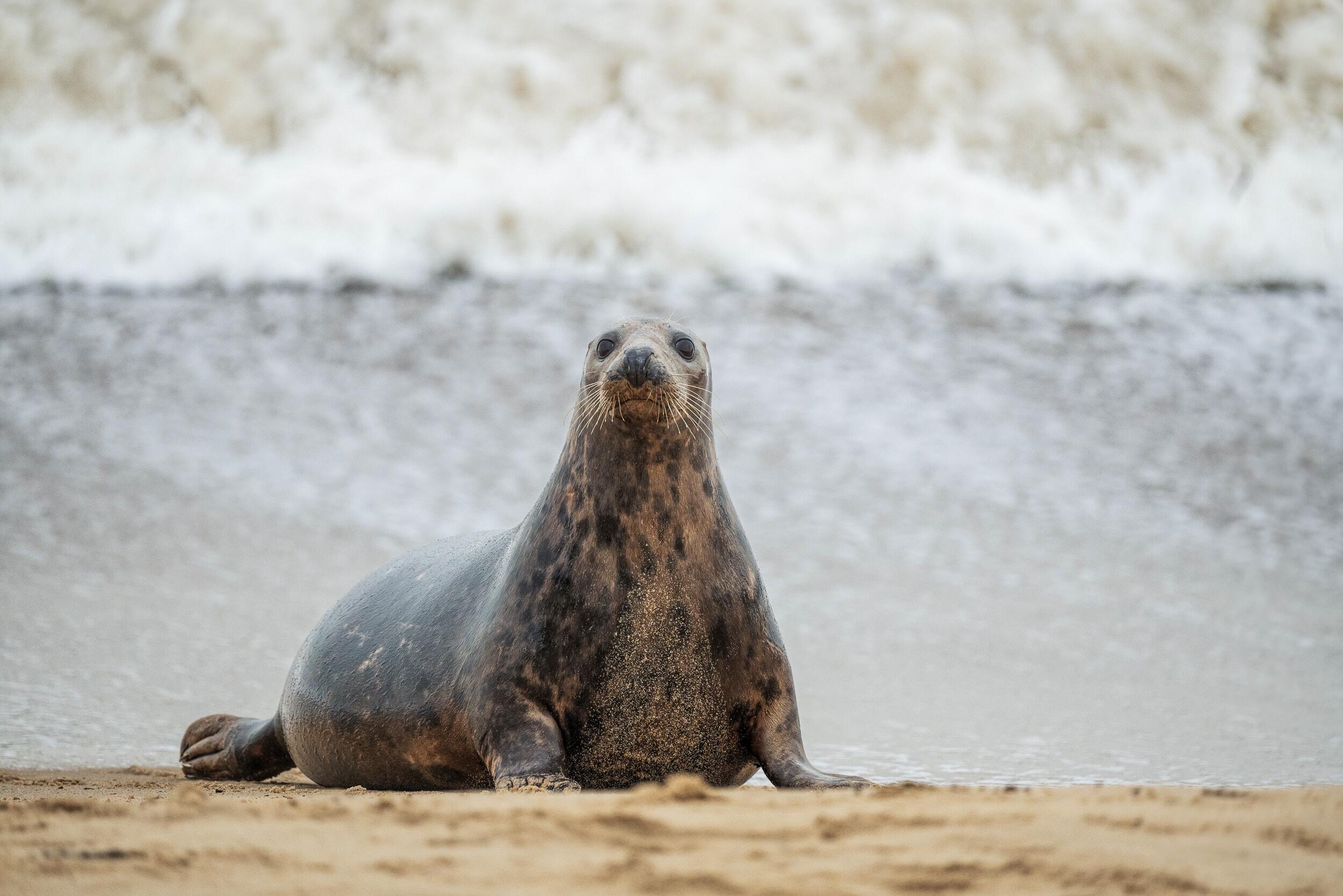 I’m mainly a large animal photographer, and years ago I fell in love with seals, from the feisty fur seals on the Namibian Skeleton Coast, to the leviathan elephant seals of South Georgia, or the curious grey seals we find along the British coastline. They’re not the prettiest of creatures but they’re full of character. Ungainly and cumbersome on land, they’re nimble athletes in the water, and both situations can provide interesting images.