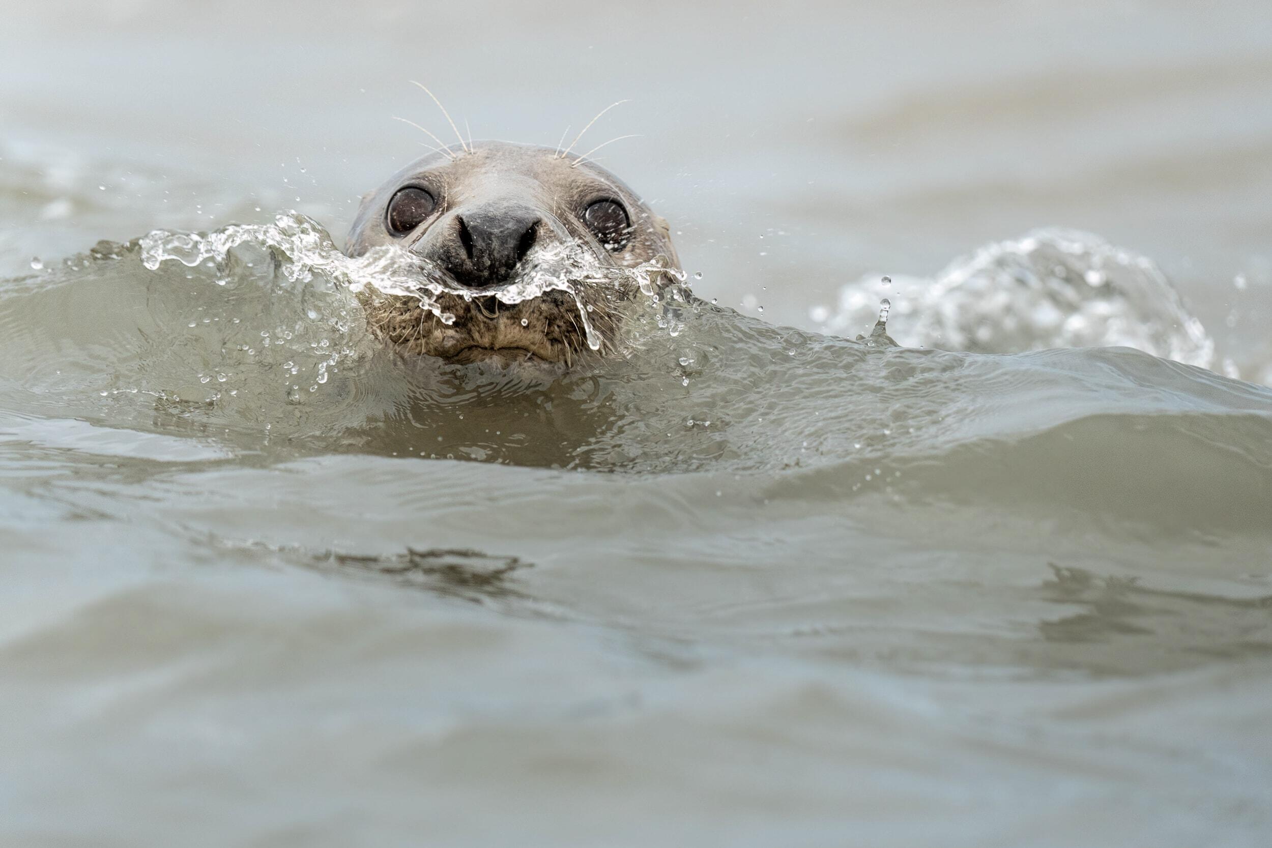 Later the same day I clambered onto a boat to see the view from the opposite direction. Choppy conditions made accurate focusing tricky, and the ‘now you see me, now you don’t’ antics of the seals in the water meant I was twisting and turning my position constantly. I was also grateful the lens was very manageable as I leaned over the side of the boat, trying to shoot from as low to the water as possible!