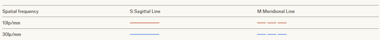 The closer the 10 line pairs/mm curve is to 1, the higher the contrast and clarity of the lens is, and similarly, the closer the 30 line pairs/mm curve is to 1, the better the resolution and sharpness of the lens is.