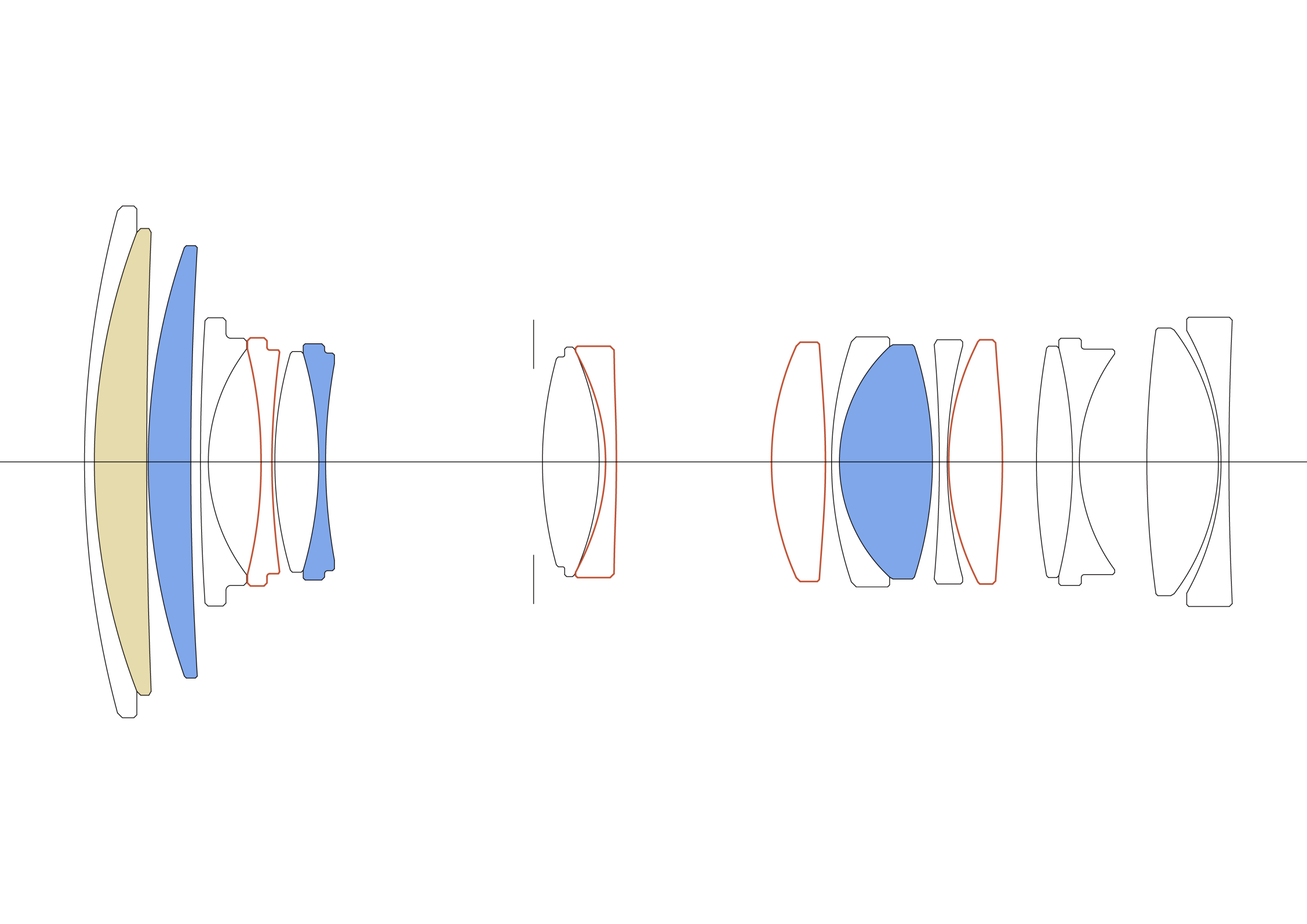 18 elements in 14 groups (1 FLD, 3 SLD, 4 aspherical elements)